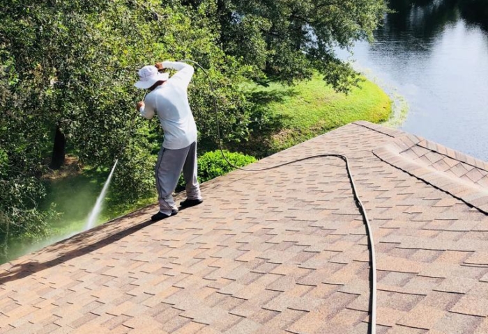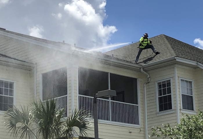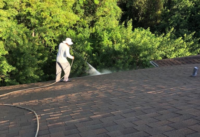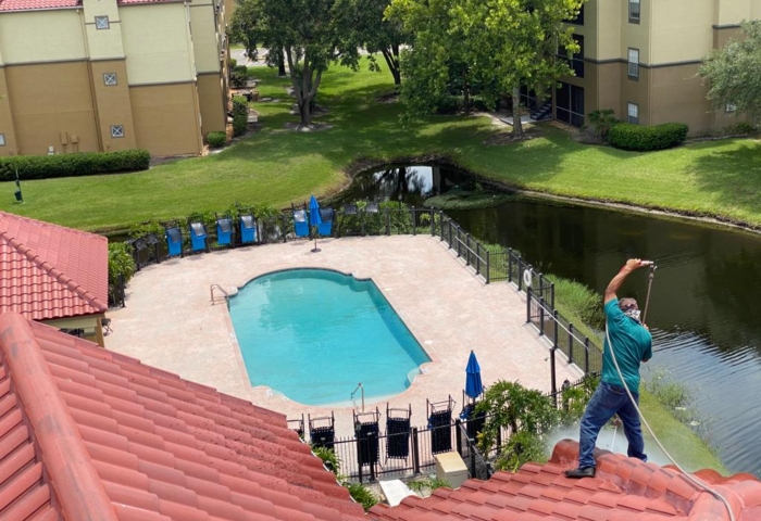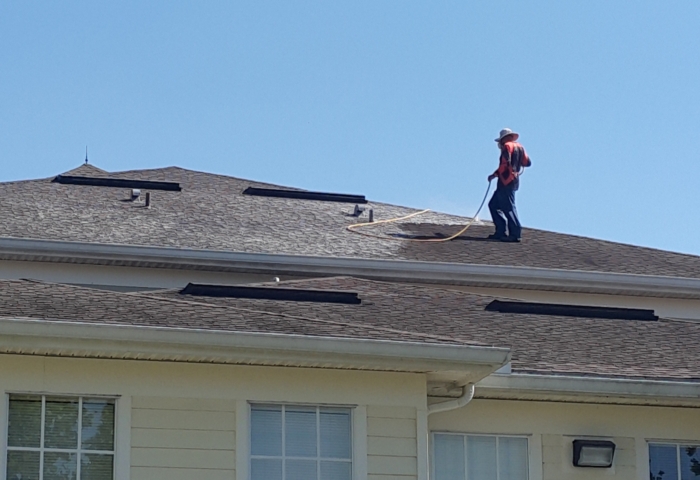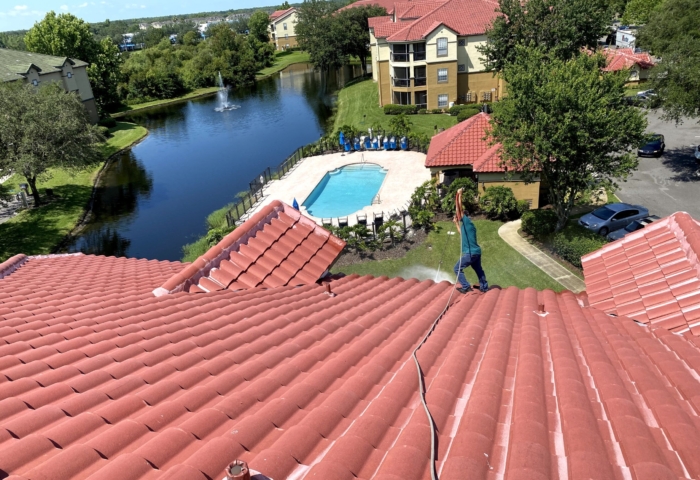 Washing without pressure, not aggressive. We have the equipment and training to perform this safe roof cleaning treatment on both tile roofs and tile roofs.